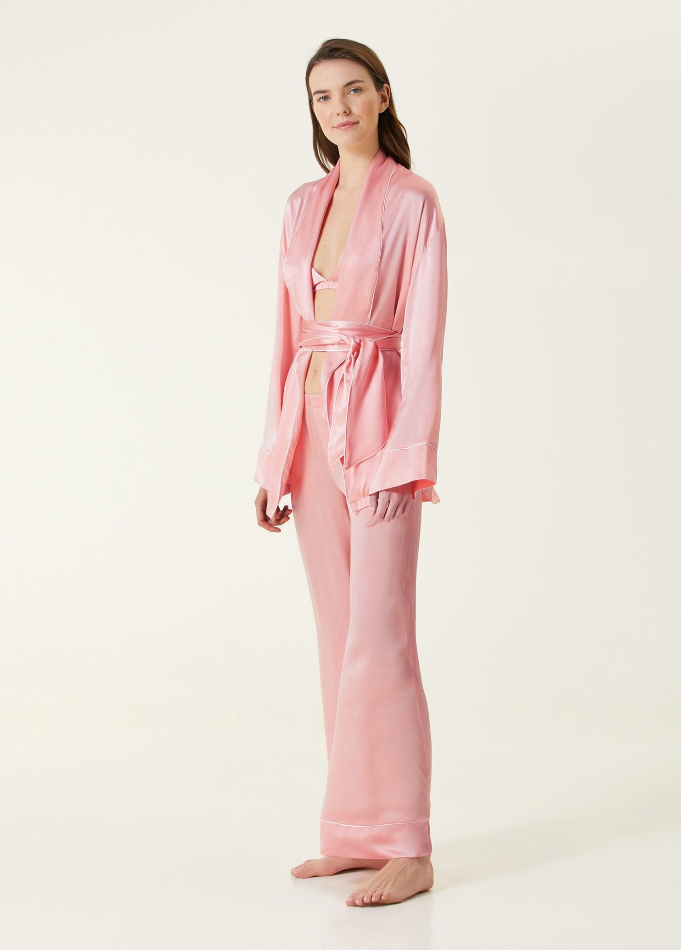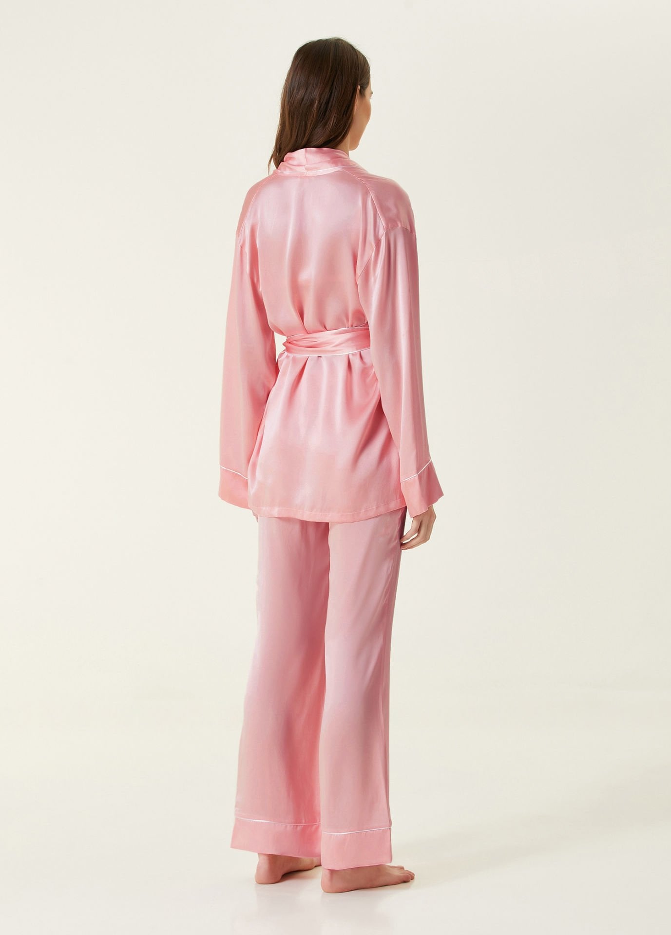 100% Silk Elegant Pajama Set. Fabric content is 100% silk.