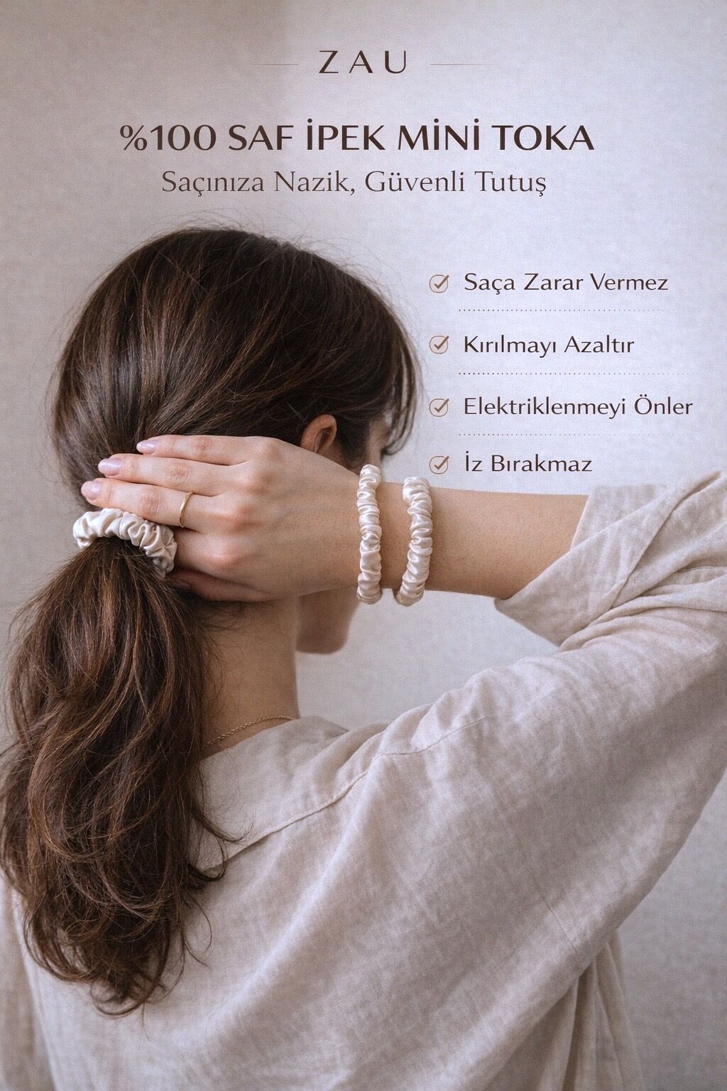 %100 saf ipekten üretilen ZAU Mini Scrunchie, saçınıza nazik ve güvenli bir tutuş sağlar.